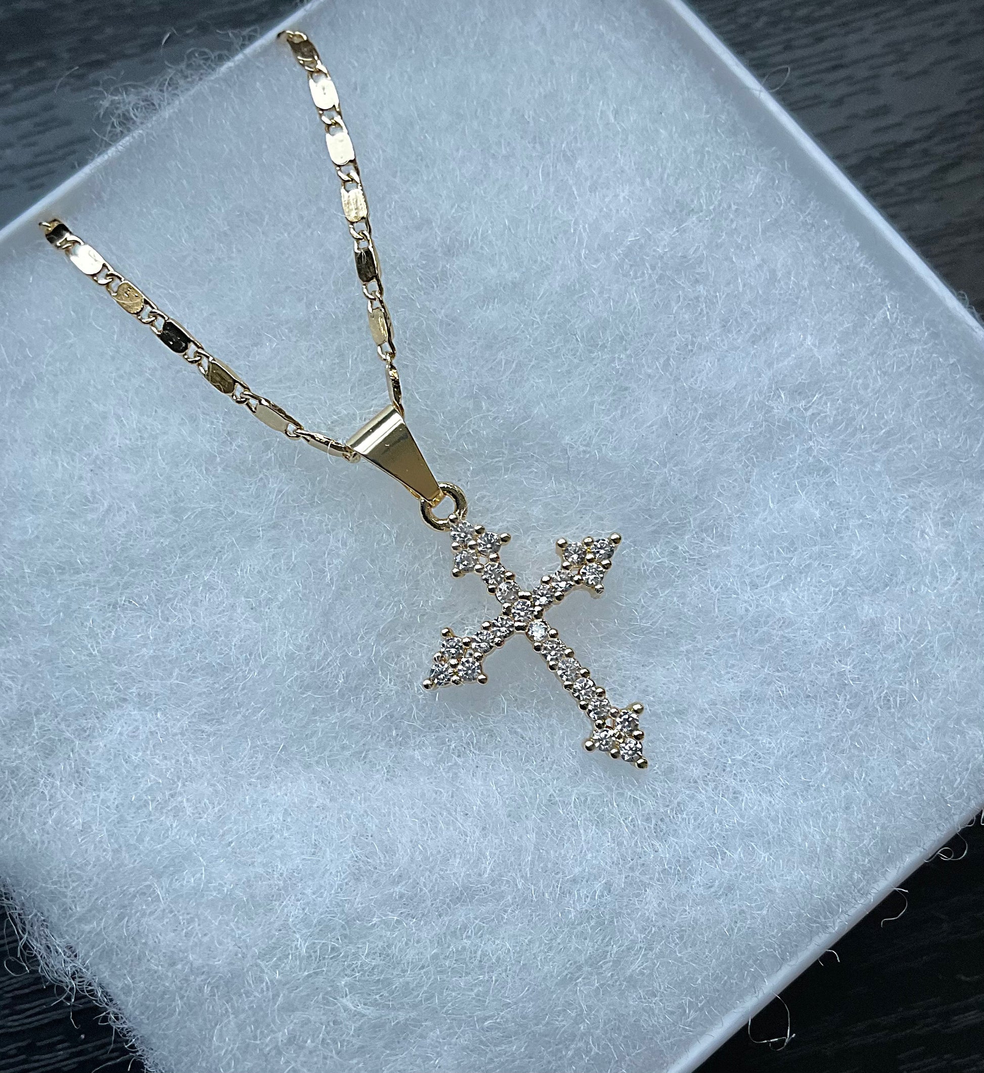 Dainty, Cross Necklace, 18K Gold Plated-Filled! Chain Length (22)