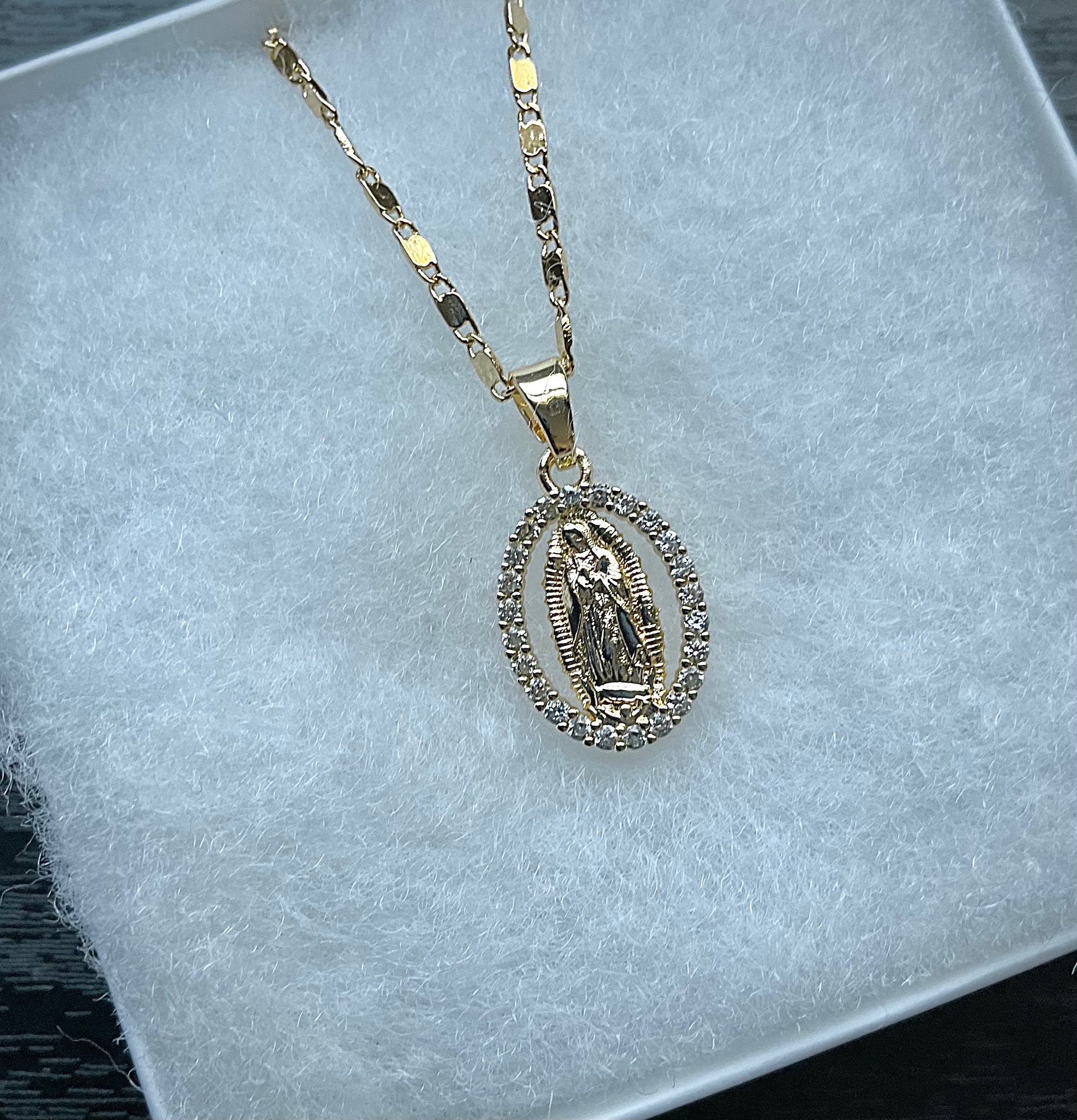 Dainty, Virgen Mary, Necklace. 18K Gold Plated. Water & Sweat Resistant. (22 inches)